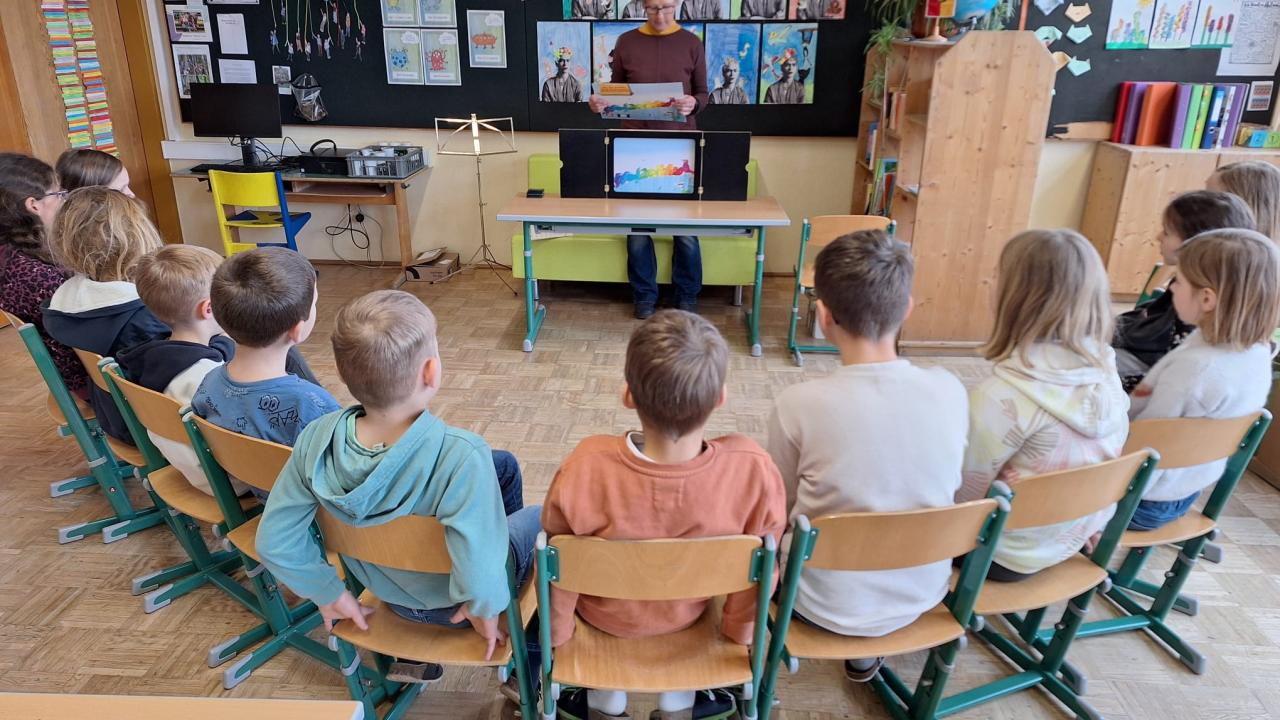 Am 26. März 2026 besuchte Gitti Ablinger die dritten Klassen der Volksschule zum Vorlesetag. Im Gepäck hatte sie die Geschichte "Als die Raben noch bunt waren". Nach der Geschichte wurde gebastelt, gebacken und gesungen.